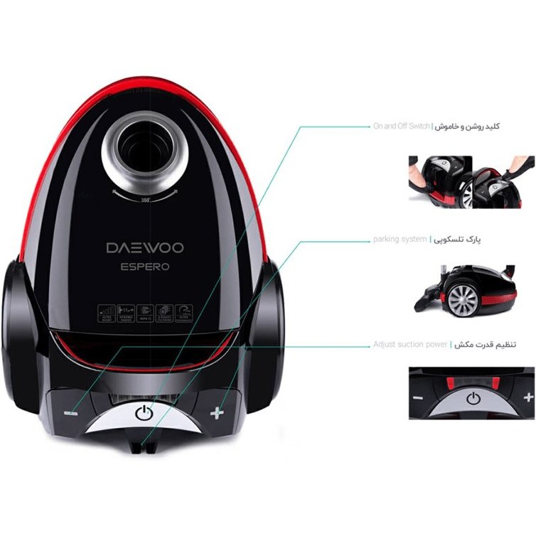 2100 وات مجهز به موتور قدرتمند برای مکش قوی و عملکرد بهینه