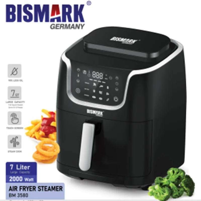 سرخکن بیسمارک BM3580 مجهز به صفحه دیجیتال لمسی (Touch Screen) است که از طریق آن میتوانید دما و زمان پخت را بهصورت دقیق تنظیم کنید. این دستگاه دارای برنامههای پخت از پیش تعیینشده برای انواع غذاها مانند سیبزمینی، مرغ، ماهی، میگو، گوشت و کیک است که کار با آن را بسیار آسان کرده است.