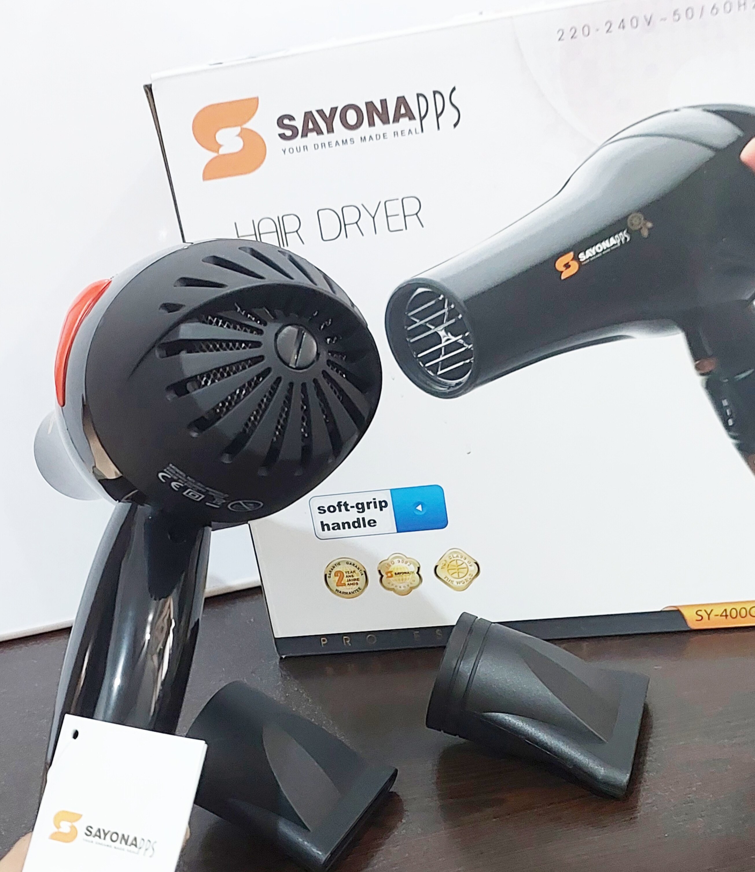 یکی از مدلهای حرفهای و خوشساخت برند SAYONA است که با طراحی مدرن و قدرت بالا، گزینهای عالی برای استفاده خانگی و نیمهحرفهای محسوب میشود. این سشوار با توان ۲۳۰۰ وات، موتور قدرتمند و قابلیت تولید باد سرد و گرم، به شما کمک میکند تا موهایی خوشحالت، براق و سالم داشته باشید.